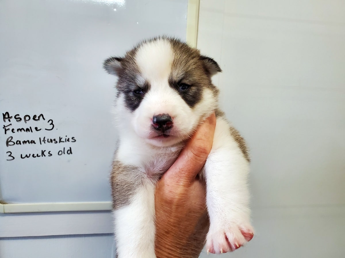 Aspen’s puppies are dainty and cute puppies. They are getting around the kennel like nobodies business. They will start eating puppy food this week.