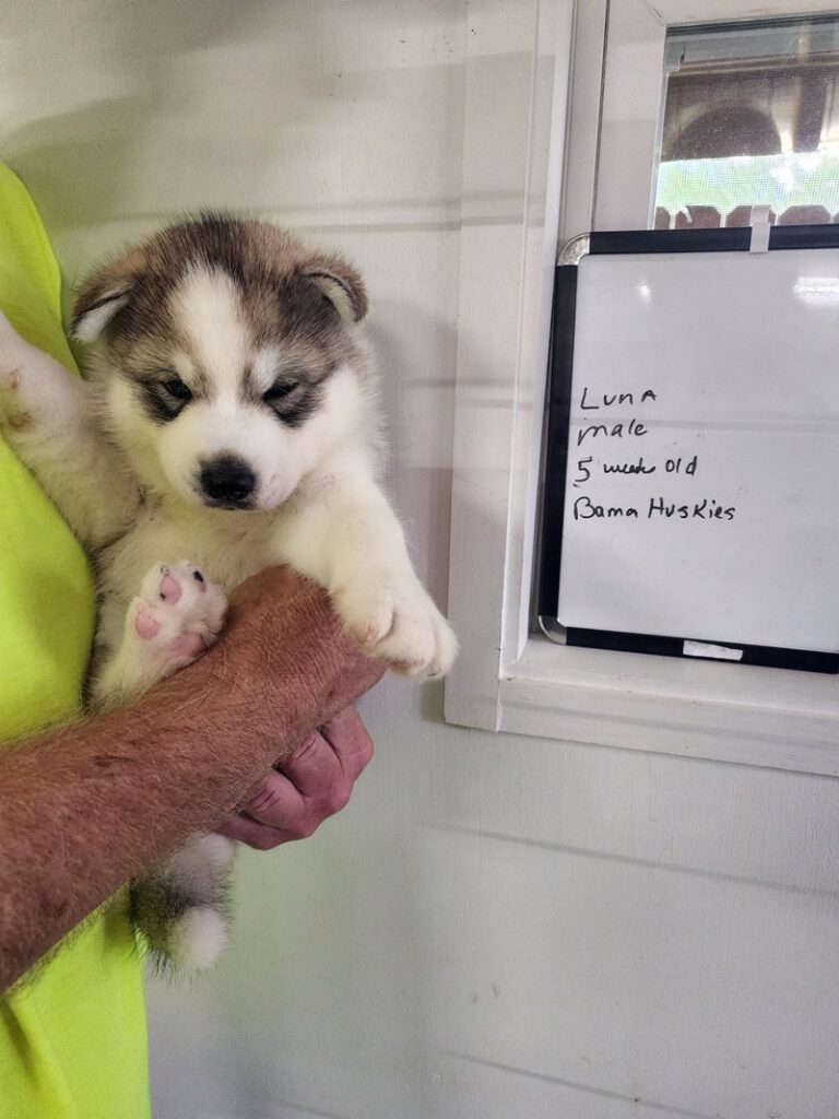Luna’s boy is huge. He weights 8 pounds 6 ounces at 4 weeks. Male sold Paulina F Husky puppy