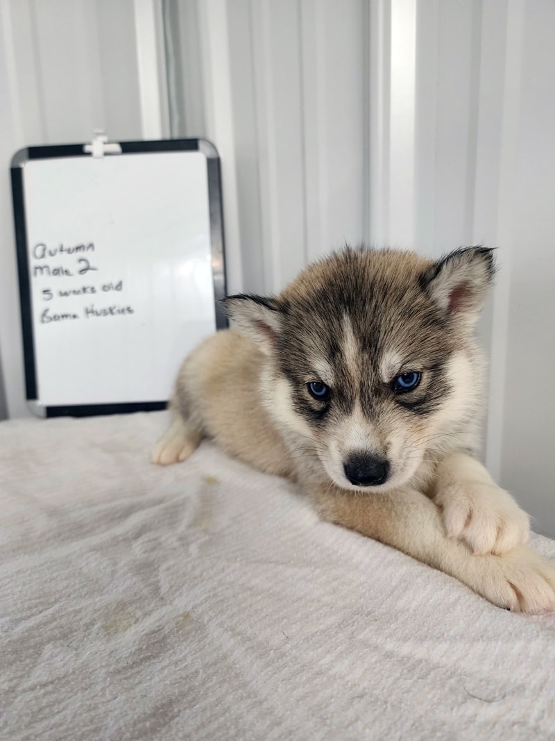 Autumn’s husky puppies are eating like pigs now. Their mom is weaning them so they are loving the puppy mush. We do have them on the Nuvet vitamins and highly recommend keeping them on them. Its a great immune booster. These puppies can start going home 2-4-23 thur 2-11-23. Please make an appointment for pick up once you decide on a date.