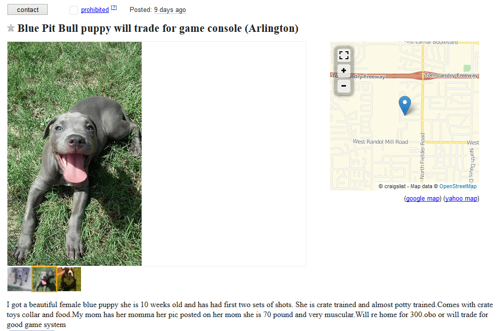 Some people just look at dogs as something disposable or replaceable. Here are some examples of whats wrong with some people who have dogs. Wonder why so many dogs are in shelters? We can see what some pet owners value their dogs by just looking at craigslist.