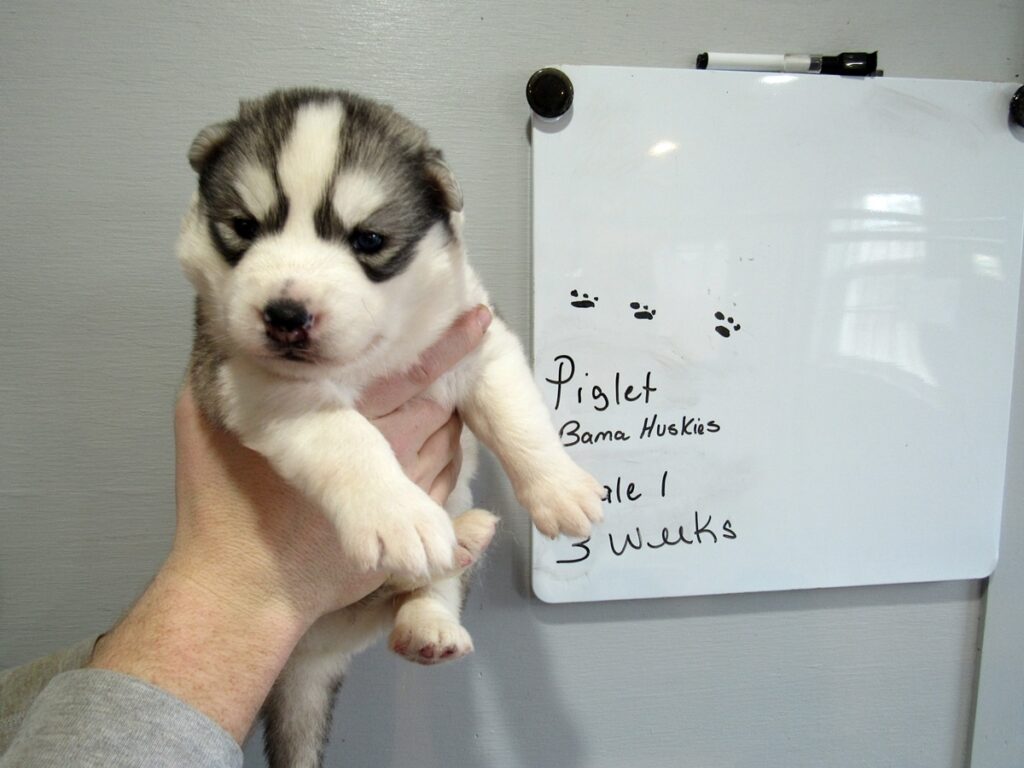 Piglets husky puppies are growing and starting to move around the nursery more now. They have discovered their voice and the male has started using it a lot! Female 1 Sold Kimberly M. Male 1 Husky puppies for sale