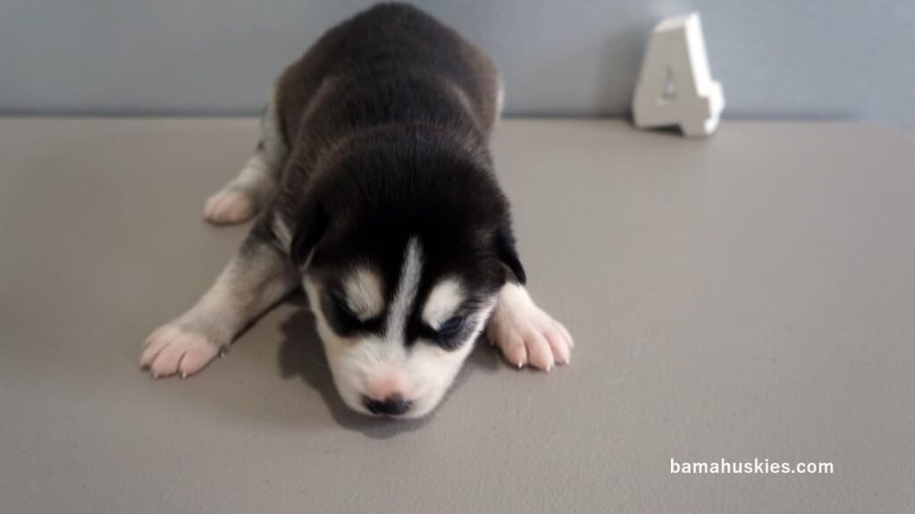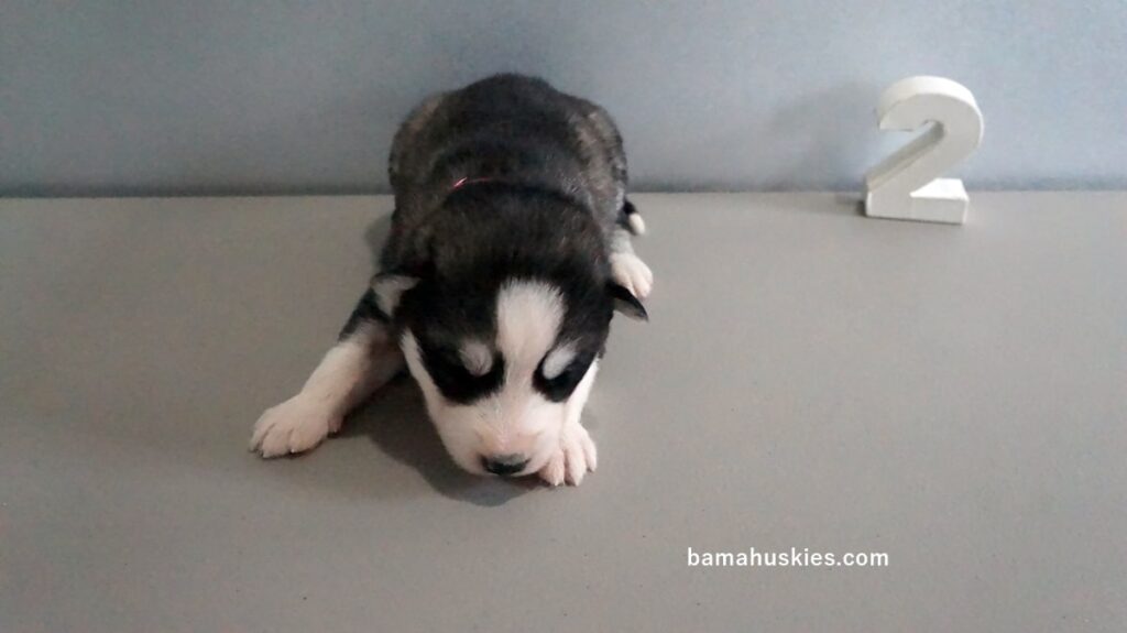 Luna’s husky puppies are 2 weeks old. They are doing great. They have their eyes open and have started playing a little. Female 1 Female 2 Female 3 Male 1 Male 2