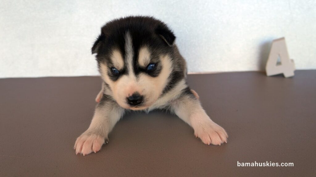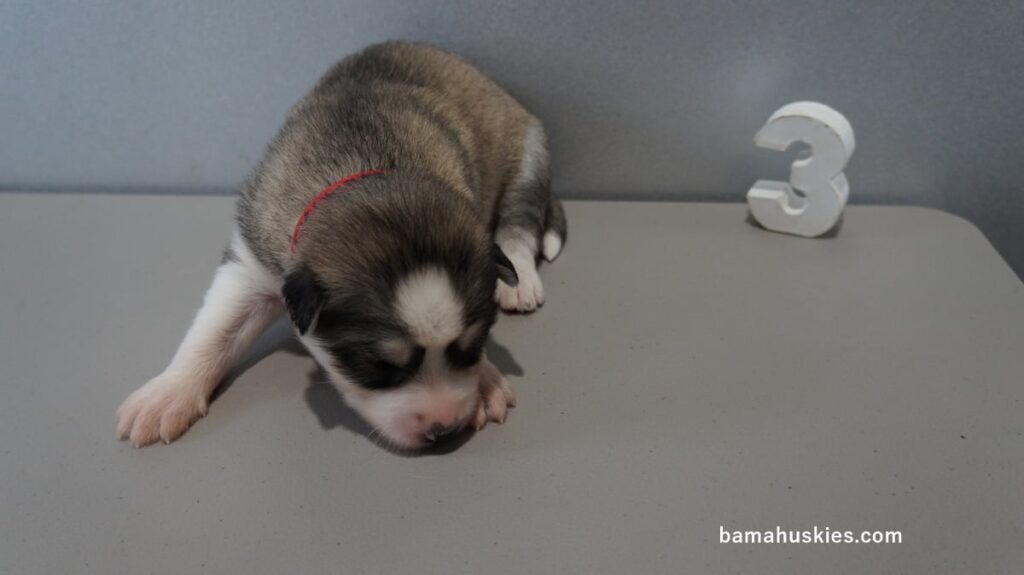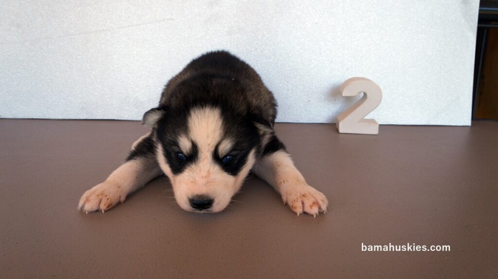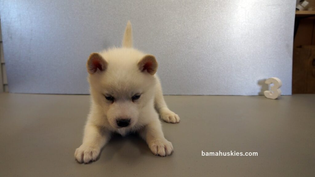Pipers husky puppies got their official numbers today. Here are the individual pictures and everyone is healthy and growing like a weed. Female 1 Female 2 Female 3 Female 4 Female 5