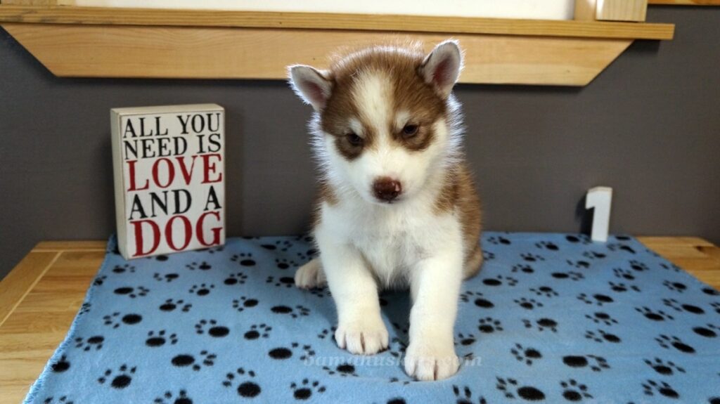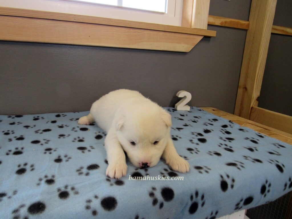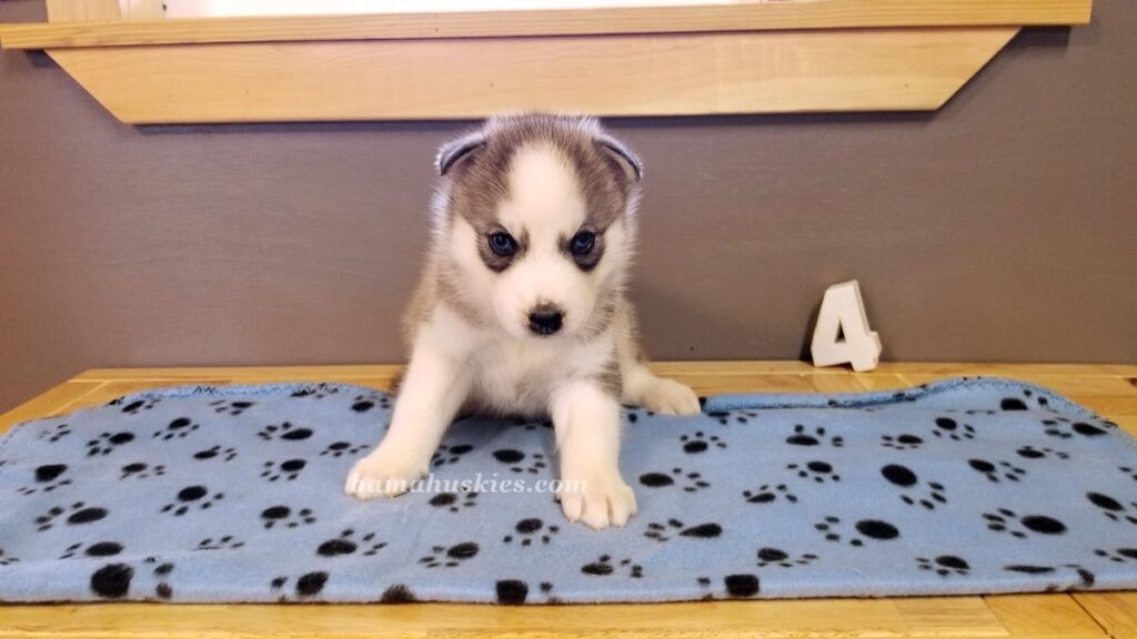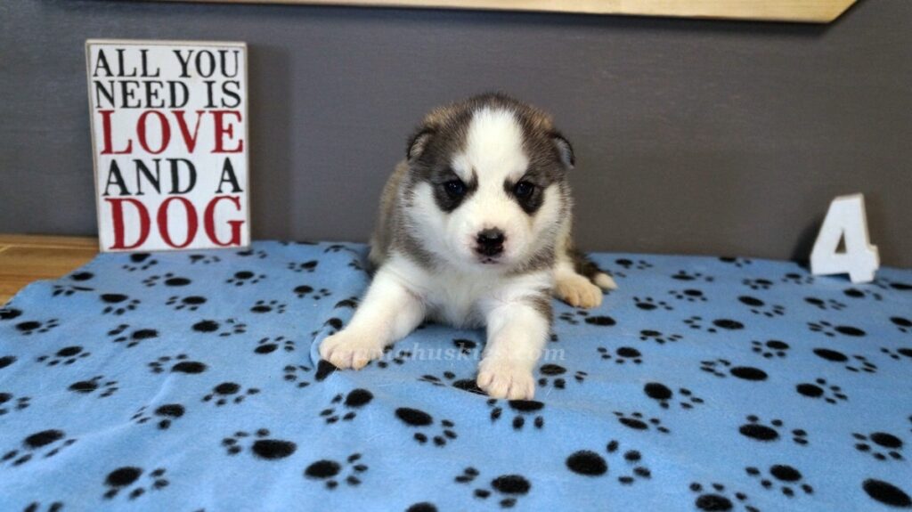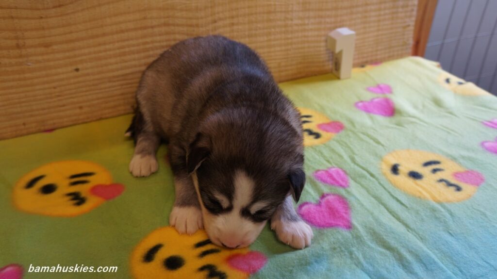 Jasmine’s husky puppies are really growing. They are fat and healthy and starting to bark and move around the kennel. Female 1 Female 2 Male 1 Husky puppies for sale.