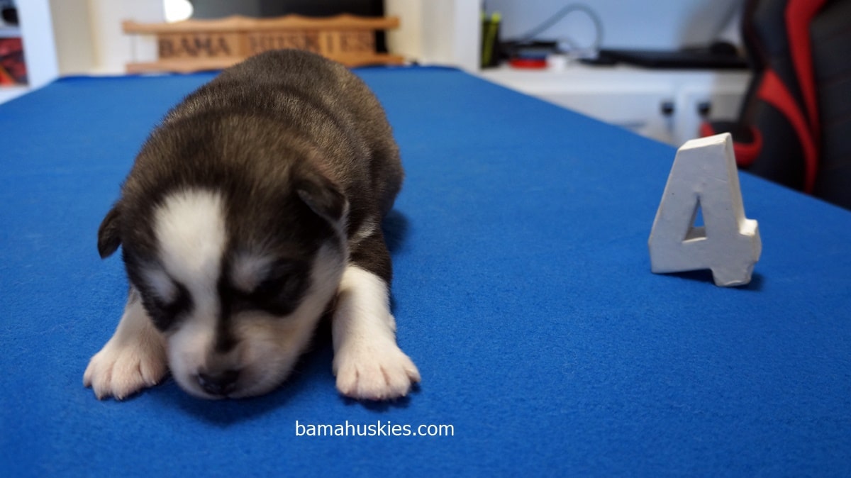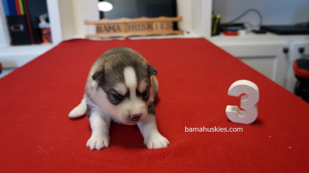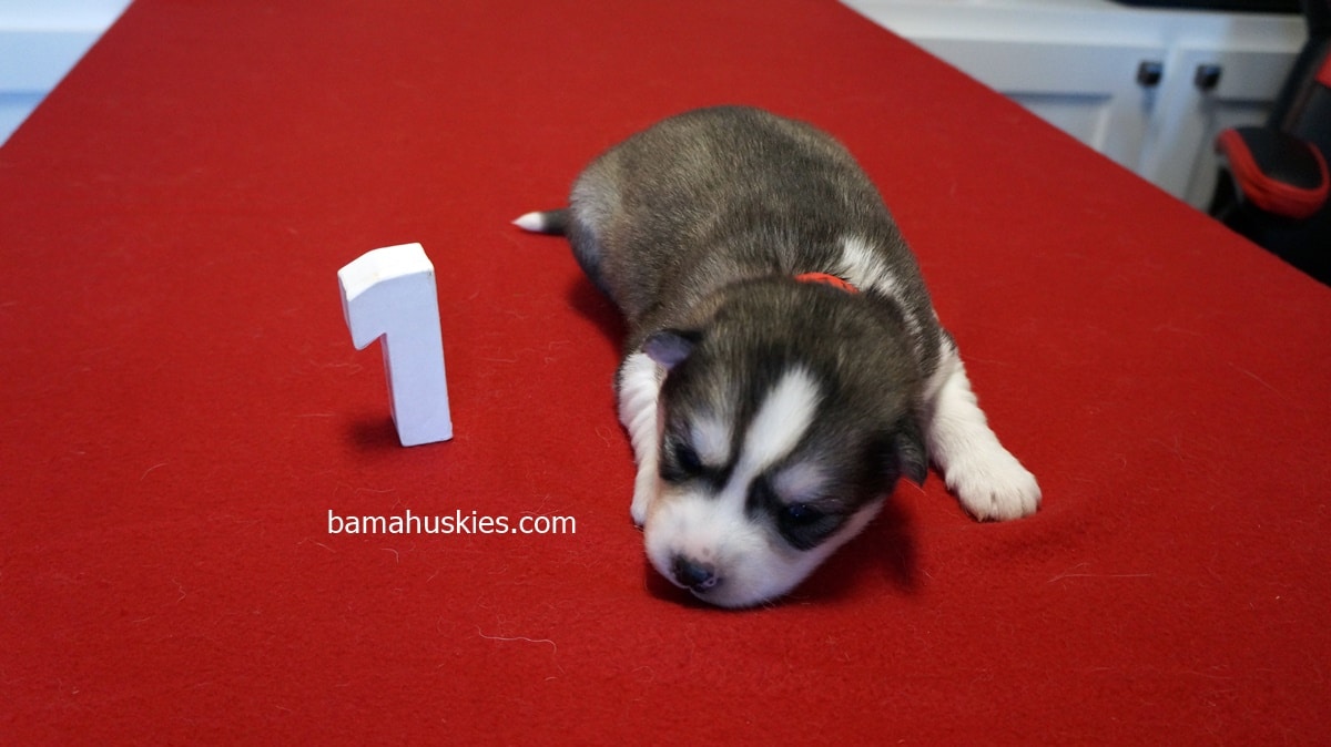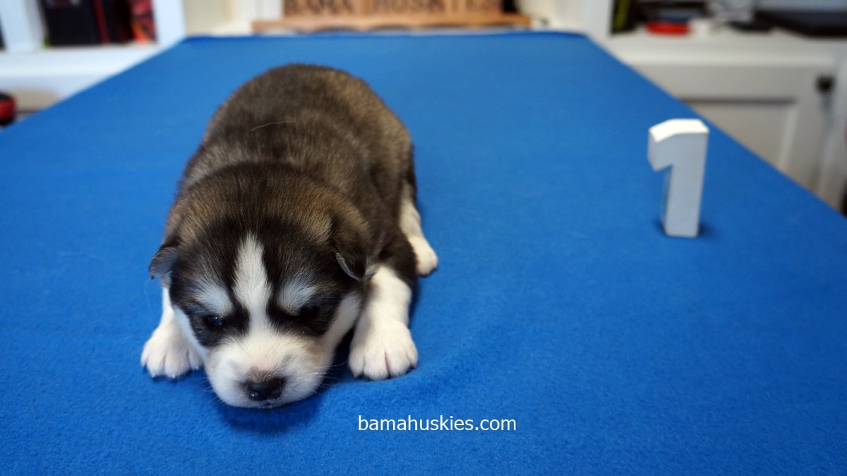Luna’s puppies were 2 weeks old yesterday on Thanksgiving. They are huge puppies and they are doing great. Here are the first individual pictures. They have been officially numbered. All these puppies will be sold to customers on our waiting list.
