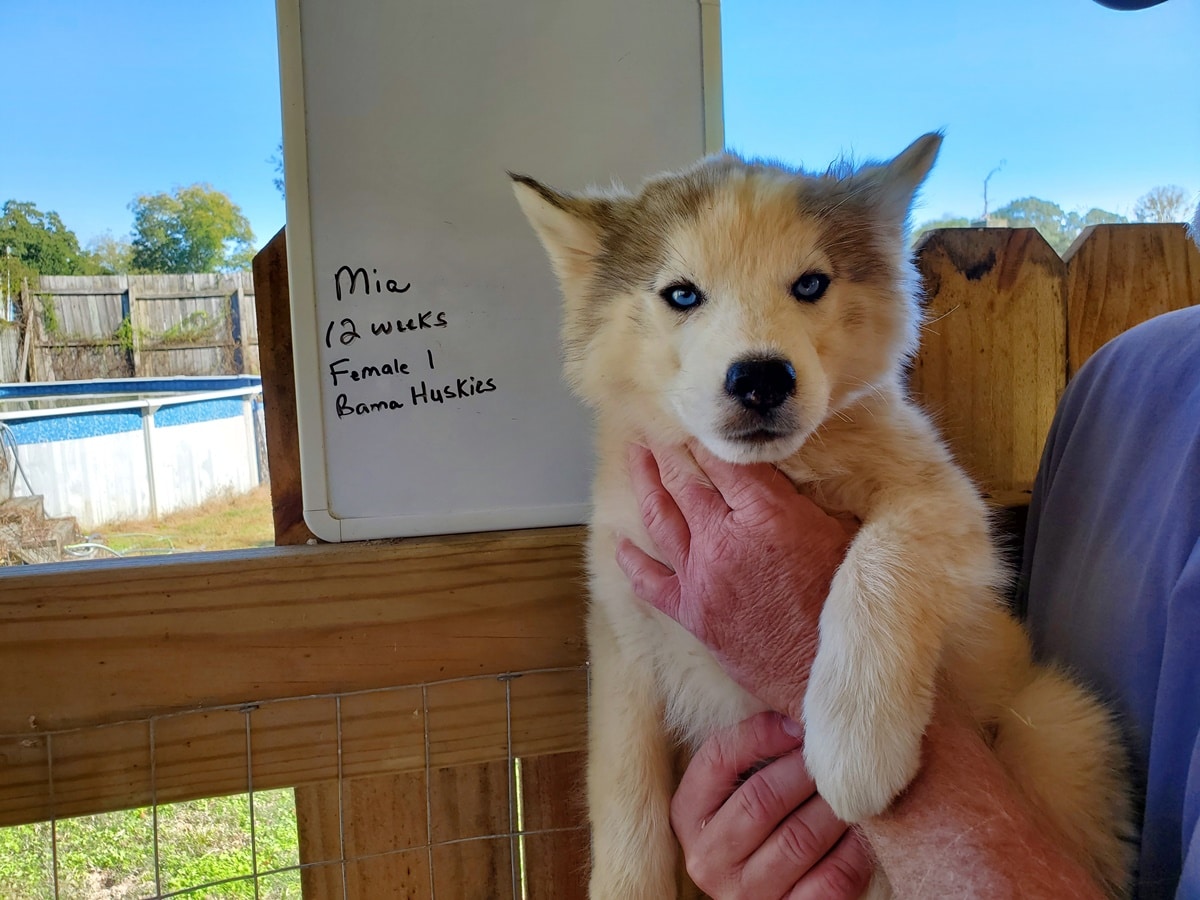 Mia’s puppies are settling in here and adjusting well. They got a round of puppy shots today and some parasite preventive medicine. Everything is looking good and we will start placing them and they can start going home this weekend 11-7th and beyond. They wont have their akc paperwork and I won’t guarantee that we will get it. I will guarantee they are full blooded Bama Huskies 3rd generation puppies. Parents are Nova and Simba daughter and Lexi and Nick Son. These puppies color will be grey and white. Their colors are going to transform over time from what they are now. Possibly Wolf grey.