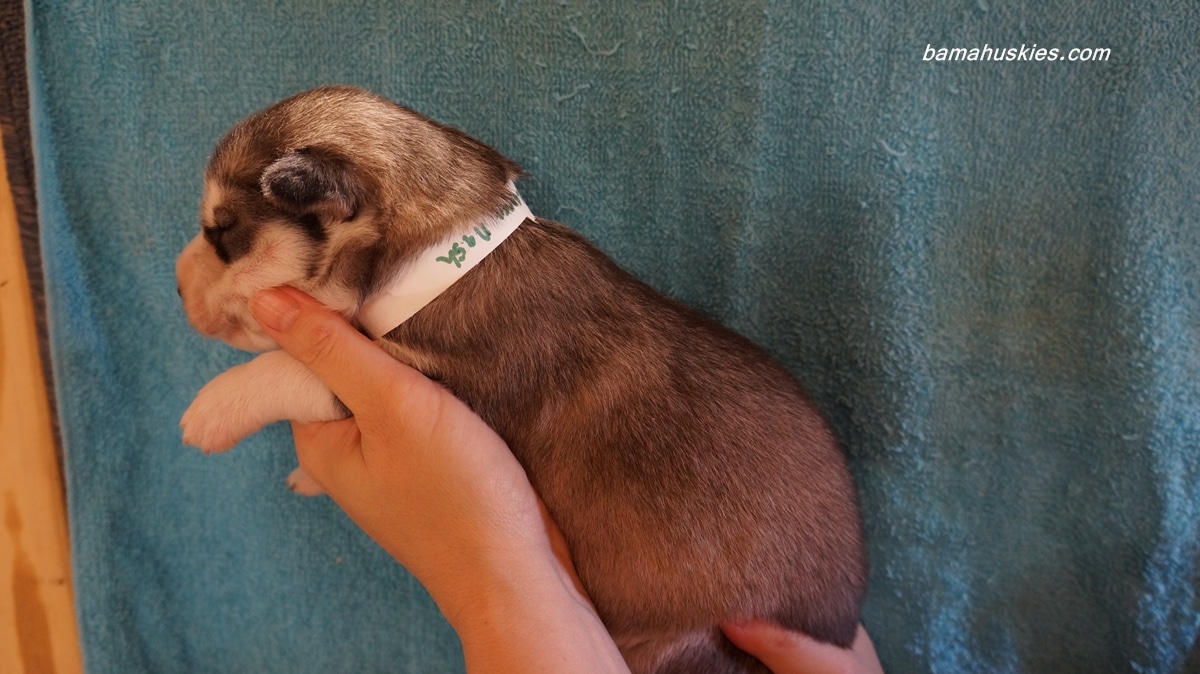 This is the official numbering of the husky puppies. All puppies are wearing a number collar and this will not change from this post onward. Here are the new husky puppy pictures. It’s time to start picking puppies!