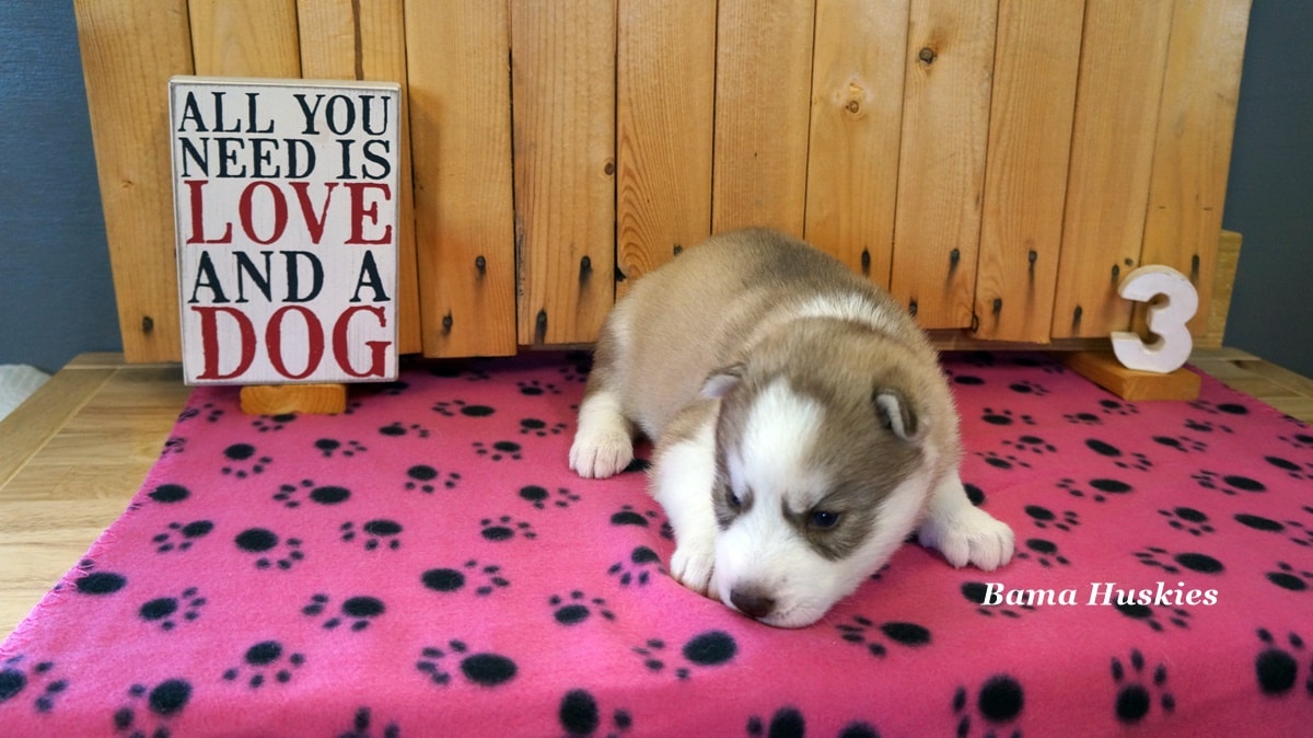 Piglets husky puppies are 3 weeks old today and they are doing great. They are eating our puppy gruel and will get their first puppy shots next weeks at 4 weeks old.