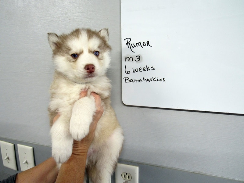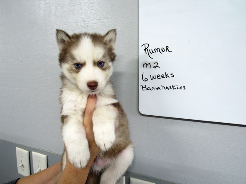 Rumors husky puppies are 6 weeks old and ready to go to there forever homes. They have been vet checked and cleared from having any worms or parasites. Please make an appointment to pick up your puppy by 8 weeks.