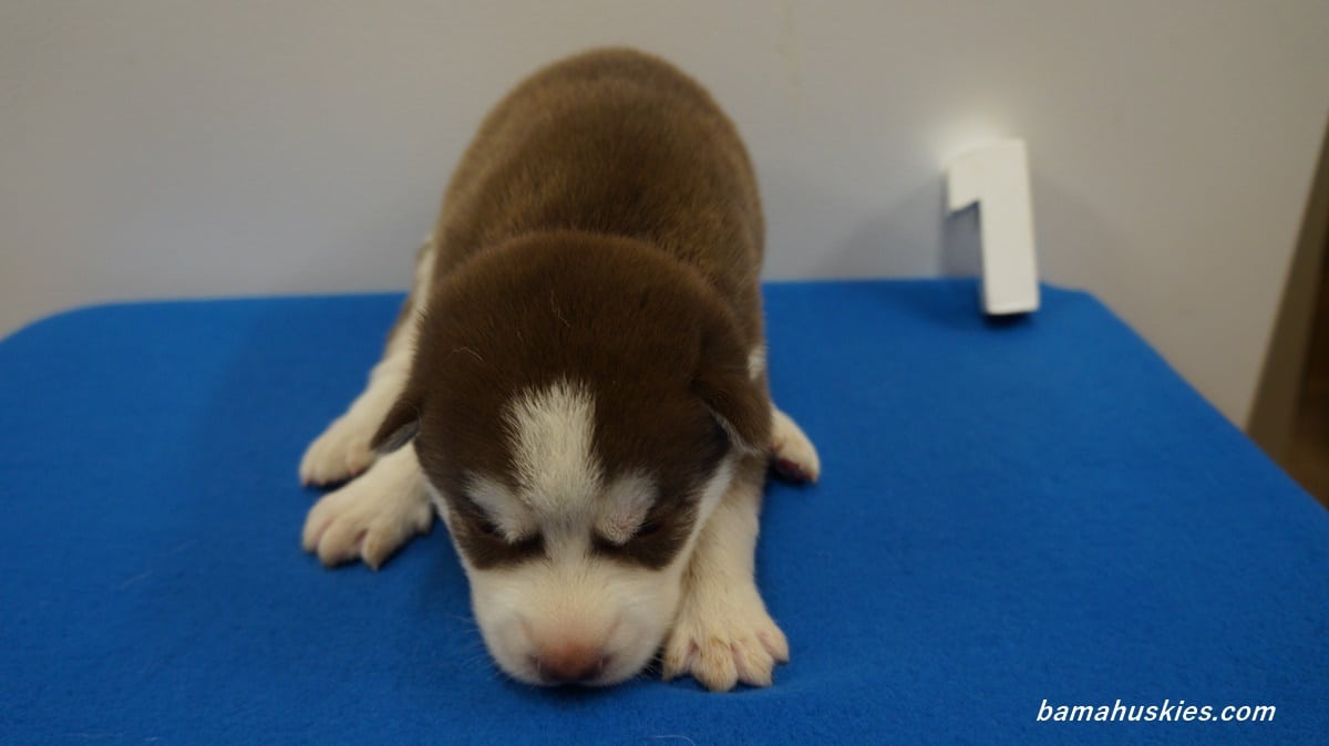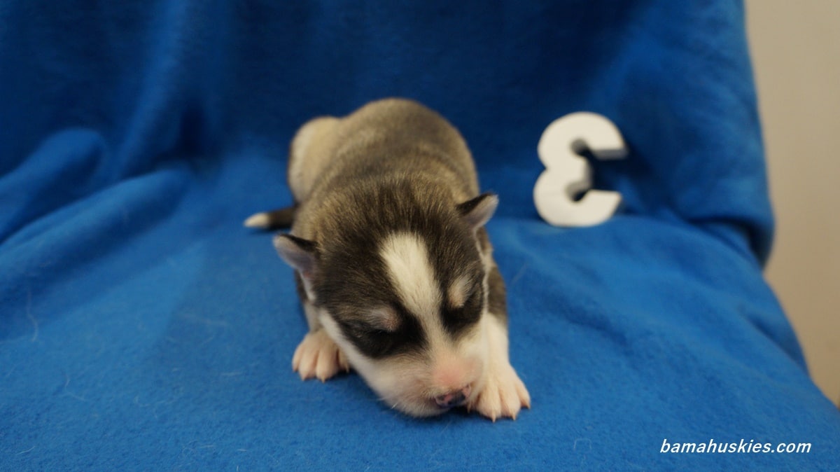 Rylee’s puppies are growing up fast. They have their eyes open and have started to play with each other and make some growling sounds. They have their official numbers today. Here is Rylee’s 2 week old husky puppy pictures.