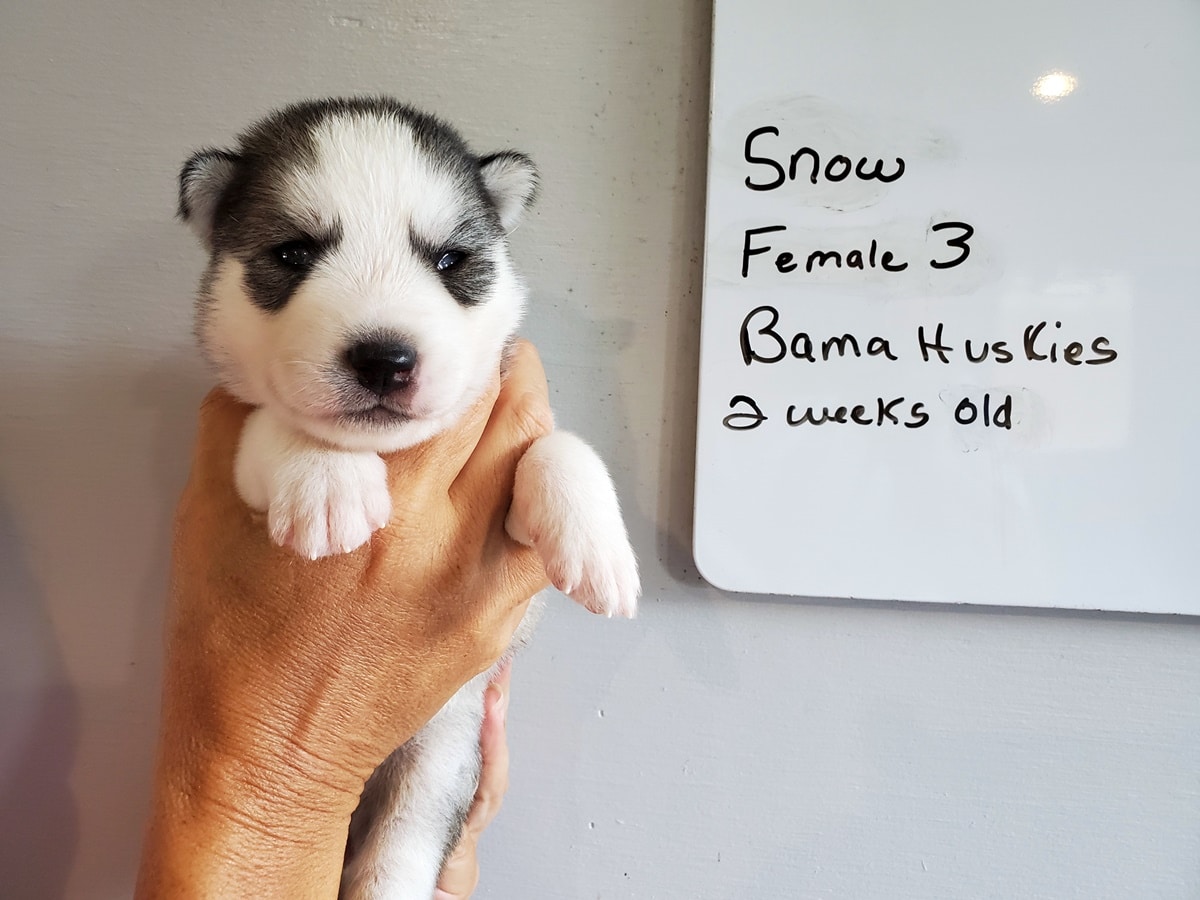 Snows puppies are growing and doing really well. They are starting to move around more and open their eyes. All these puppies will be sold to our waiting list. We are only taking deposits for next year at this time.
