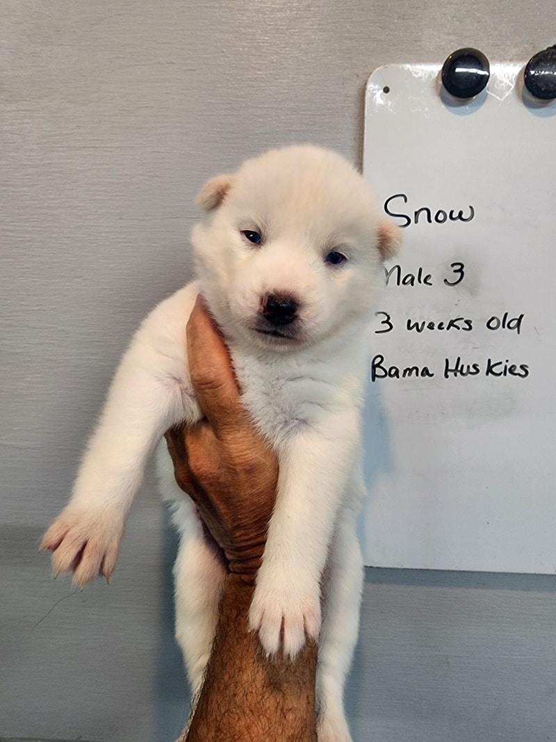 Snow’s puppies are growing up fast. They are a few days past the 3-week mark. We have been busy this week at the kennels. They are barking and playing with each other. They love people already and are very friendly.